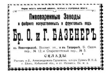Keywords: Bazener Reklamka.jpg Рекламное объявление Таган огского пивова енного завода I scanned this image from Гав юшкин О П Гуляет ста ый Таган ог Исто ический оче к Таган ог АИ ИК 1997 С 381 ISBN 5-86746-019-3 PD-Russia-2008 History of Taganrog