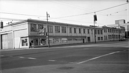 | Keywords: blackandwhite monochrome road outdoor vehicle black and white The former B.C. Electric Railway [street]car barns building on the NW corner of Main and Prior Streets prior to demolition. Photo taken on March 23, 1969. The northern section (right) was built in 1899. The structures on this block were cleared for construction of the Georgia and Dunsmuir Street viaducts (completed 1972). [City of Vancouver Archives; Walter Edwin Frost, photographer] The former B.C. Electric Railway [street]car barns building on the NW corner of Main and Prior Streets prior to demolition. Photo taken on March 23, 1969. The northern section (right) was built in 1899. The structures on this block were cleared for construction of the Georgia and Dunsmuir Street viaducts (completed 1972). [City of Vancouver Archives; Walter Edwin Frost, photographer] |