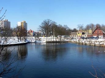 Keywords: Bdg dom śluzowego śl II 03-2013b.jpg pl Akwen doprowadzający do dawnej śluzy II Kanału Bydgoskiego zasypanej w 1972 r own Pit1233 2013-03 Śluza II Cc-zero