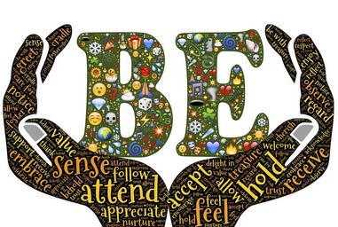 Keywords: be behold emoji symbols alive awake aware being hands holding attention acceptance allowing feel embrace hold touch sense appreciate non-judgment life love affection happiness joy playful delight consciousness awareness