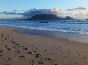 Keywords: beach abendstimmung table mountain cape town south africa footprints sea ocean