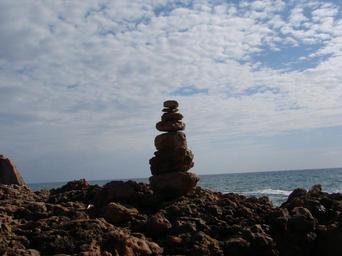 Keywords: beach artwork sea clouds horizon stones