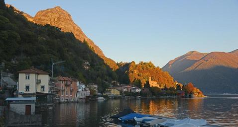 Keywords: italy village buildings architecture fall autumn mountains bay harbor port water river boats forest trees nature outside beautiful peaceful reflections