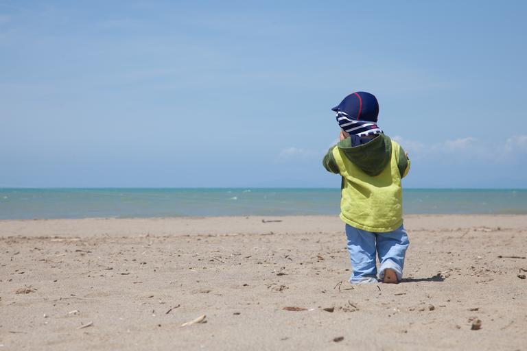 Keywords: beach child sea view play swim summer