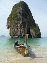 Keywords: beach cliff boat colored ribbons scenic krabi