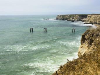 Keywords: beach cliffs sea sky water ocean coast natural sunny coastline shore seascape scenic outdoor travel landscape