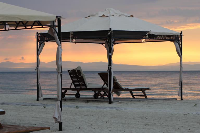 Keywords: beach deckchair sunrise sea holiday tent