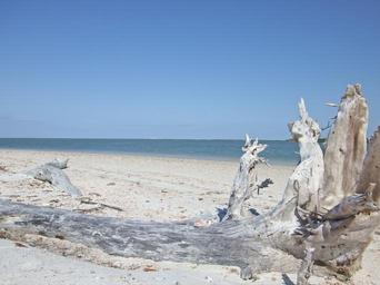 Keywords: beach driftwood sand blue ocean water shore coast sky island coastline sea