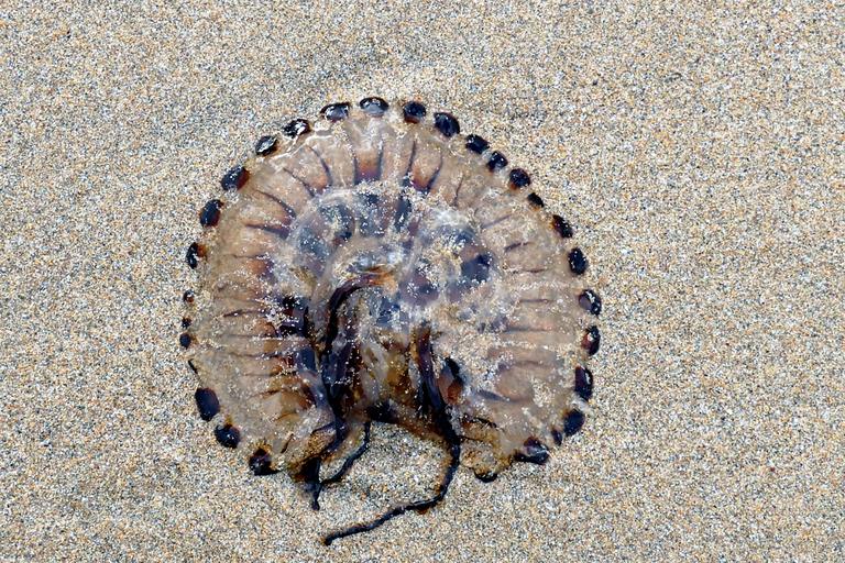 Keywords: beach jellyfish sea sand nature ocean life water jelly beached wildlife marine fish shore creature animal aquatic seashore coast summer organism washed danger brown cnidaria colorful europe seaside invertebrate sealife