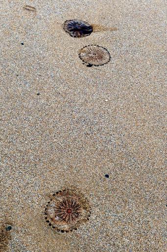 Keywords: beach jellyfish sea sand nature ocean life water jelly beached wildlife marine fish shore creature animal aquatic seashore coast summer organism washed danger brown cnidaria colorful europe seaside invertebrate sealife