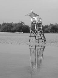 Keywords: beach lifeguard sandy beach ocean sea sand lonely coast reflection