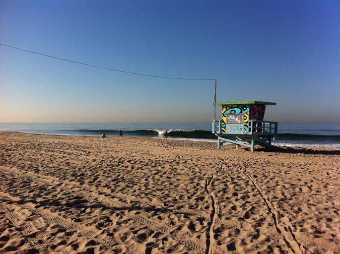 Keywords: beach los angeles venice water waves track sand summer himmel blue lifeguard