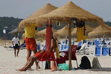 Keywords: beach mar salvador beira mar nature swimmer sand water blue sky salt water security calm peace serenity sitting people working