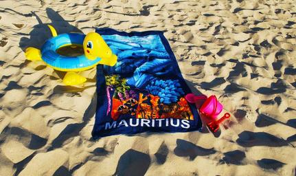 Keywords: beach mauritius towel ring for swimming sand postcard background toys laying
