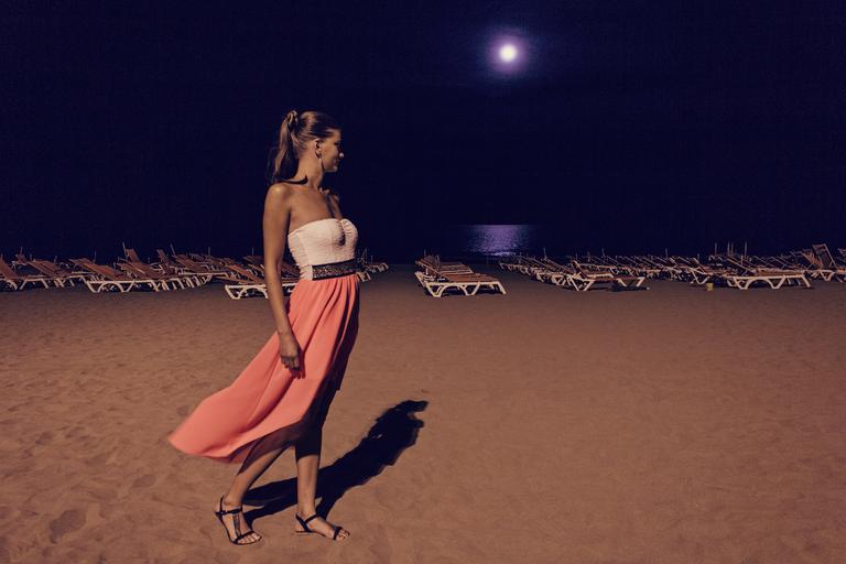Keywords: beach moonlight young woman woman summer holiday gran canaria canary islands playa del inglés beach moonlight young woman woman summer holiday