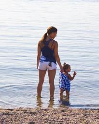 Keywords: beach mother and daughter ripples summer water enjoying child woman leisure fun sunny happy girl wading