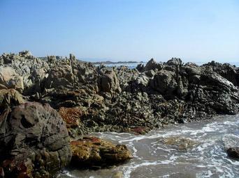 Keywords: beach ocean sea marine rocky south africa african coast sunny water rocks stones summer