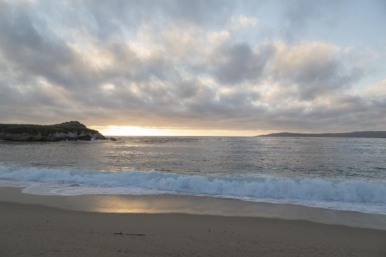 Keywords: beach ocean sea water sunset seascape landscape coast clouds surf waves sand coastline scenic relax monterey california usa
