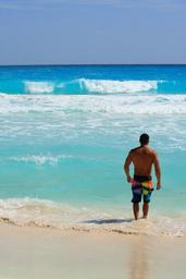 Keywords: beach ocean tropical sea water travel vacation blue sand wave shore sun paradise relax sunny man tourism turquoise mexico