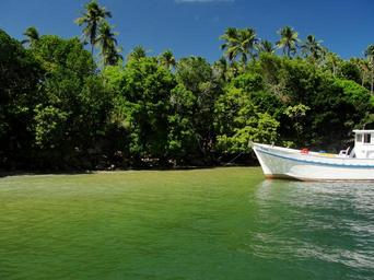 Keywords: beach paradise sea boat vacation island sky blue tourism