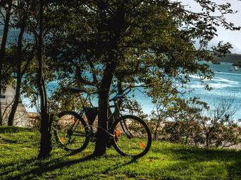 Keywords: beach rest holiday relax peaceful bicycle coastal landscape background water nature sunset trees field