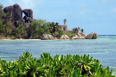 Keywords: beach rocks tropics landscape lagoon sea seychelles