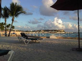 Keywords: beach sand resort spa relax relaxation water ocean caribbean shore idyllic peaceful st maartan island holiday vacation tropics tropical