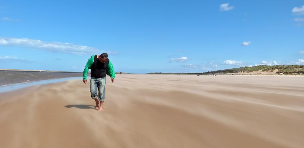 Keywords: beach sand sea summer idyllic shore beach sand horizon water sky relax sandstorm person man on beach