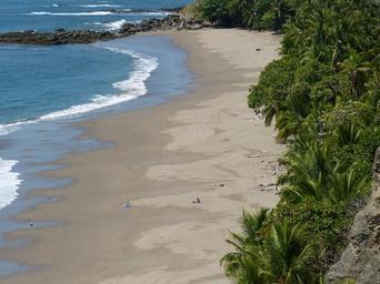 Keywords: beach sand sea wave holiday pacific booked coast nature costa rice central america tropics tropical landscape palm trees empty lonely
