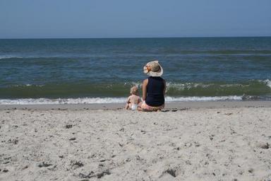Keywords: beach sand sea wave north sea denmark holiday holidays sand beach nature water baby woman hat