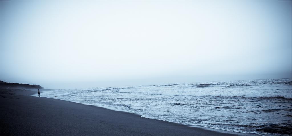 Keywords: beach sand shore water waves ocean sea horizon sky