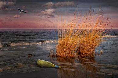 Keywords: beach sea baltic sea abendstimmung flotsam