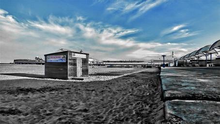 Keywords: beach sea sand hut ocean landscape scenery outdoor environment view scenic land coast coastline seascape horizon