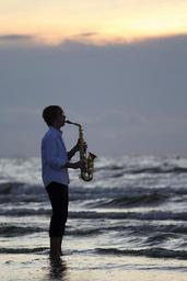 Keywords: beach sea sunset blue relaxation water people west saxophone