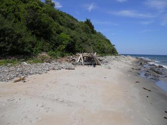 Keywords: Beach Shelter.JPG en Driftwood beach shelter against the sun and wind Sandy Point State Reservation Ipswich MA The tide is full own Botteville 2010-06-15 Sandy Point State Reservation