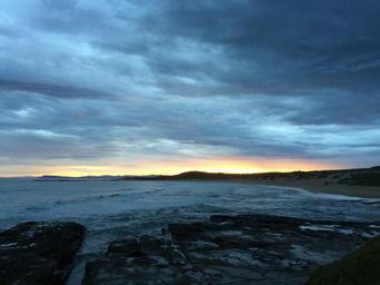 Keywords: beach sunset rocks ocean sea water sky