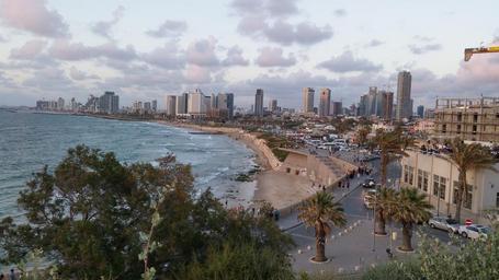Keywords: beach sunset travel landscape beach sea seaside city big build buildings palm tree water skyscrapers sunset evening