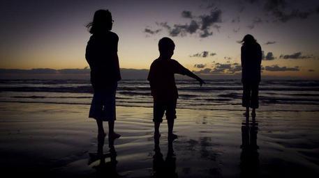 Keywords: beach sunset twilight silhouette kids children family view horizon