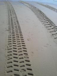 Keywords: beach tire tracks traces sea tracks in the sand holland north sea coast beautiful sun art mature details summer sand