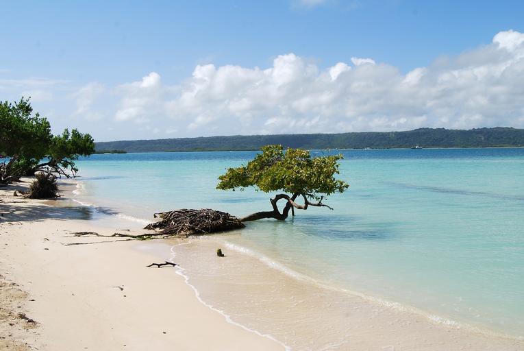 Keywords: beach tropical ocean seashore seascape scenic sand surf trees coast sunny nature shore
