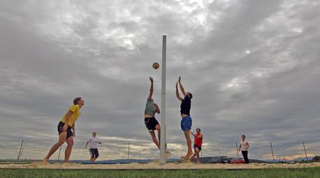 Keywords: beach volleyball clouds ball volleyball sky