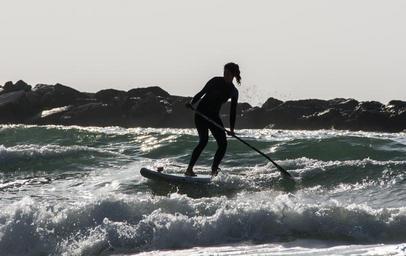 Keywords: beach wave surfer water sea water sports wetsuit surfboard paddle surf