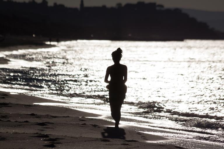 Keywords: beach woman young walk on the beach sea holiday water sand recovery back light sun atmospheric person human female beach woman young walk on the beach sea holiday water sand recovery back light sun atmospheric
