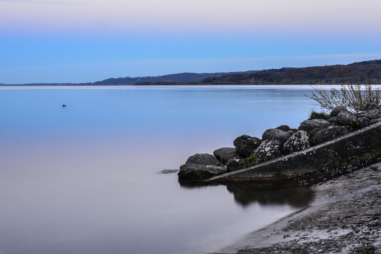 Keywords: beach yverdon lake neuchâtel switzerland blue landscape horizon sky