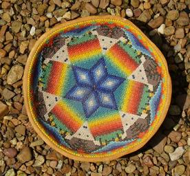 Keywords: beaded gourd bowl old mexico beads handmade craft gourd handicraft antique treasure traditional colorful