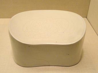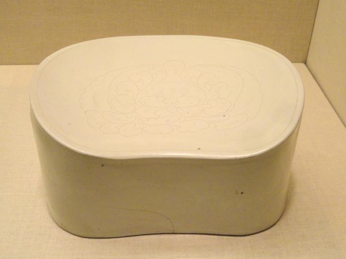 | Keywords: Bean-Shaped Pillow, 12th century, Jin Dynasty, China, Ding ware, porcelain with incised peony design - Art Institute of Chicago - DSC00270.JPG Exhibit in the Art Institute of Chicago Chicago Illinois USA This artwork is in the public domain because the artist died more than 70 years ago Photography was permitted in the museum without restriction Daderot 2012-10-10 16 39 43 Daderot cc0 cc0 Ceramic pillows in the Art Institute of Chicago Ding ware | ||||