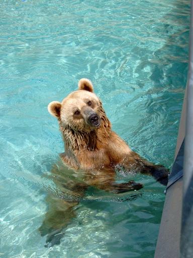 Keywords: bear animals wild zoo brown mammal the bear fur predator water swimming pool