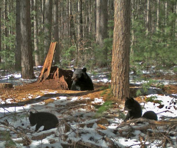 | Keywords: michigan huron-manistee huronmanistee national forests manistee/cadillac manisteecadillac ranger district wildlife black bear bears cubs outdoor Black bear cubs who first left their den site in early April. Please note - these photos have been edited. Shadows have been reduced to better see the cubs. Black bear cubs who first left their den site in early April. Please note - these photos have been edited. Shadows have been reduced to better see the cubs. | ||||