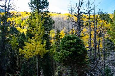 | Keywords: abineau-bear jaw loop abineaubearjawloop arizona bear jaw trail bearjawtrail bear jaw trail #26 bearjawtrail26 bear jaw trail no. 26 bearjawtrailno26 coconino national forest coconinonationalforest flagstaff ranger district flagstaffrangerdistrict forest service forestservice kachina peaks wilderness kachinapeakswilderness san francisco mountain sanfranciscomountain san francisco peaks sanfranciscopeaks usfs aspen aspens fall color fallcolor fall colors fallcolors fall foliage fallfoliage flagstaff forest hiking mountain outdoors peaks trail wilderness outdoor foliage plant tree landscape flower Abineau Trail is a steep 1,800 foot climb over two miles up the slopes of the San Francisco Peaks through Abineau Canyon. The trail meets the Waterline Trail at the top, which can be followed down to Bear Jaw Trail to return to the trailhead. Each leg of the loop is around two miles long, plus a 0.4 mile connector trail from the trailhead to the loop, making a total loop hike of seven miles. The loop is one of the quintessential autumn hikes in the San Francisco Peaks. Aspens along all three legs of the loop turn gold, and falling leaves carpet the forest floor and decorate the conifers. A storm system passed through the area October 4-7, 2015, raining at lower elevations and snowing on the upper reaches of the San Francisco Peaks. The snow-capped Peaks were a wonderful treat after the few days grey, cloudy, wet weather that had put a damper on outdoor activity. Photo by Deborah Lee Soltesz, October 8, 2015. Credit: U.S. Forest Service, Coconino National Forest. For more information about this trail, see the Abineau-Bear Jaw Loop trail description on the Coconino National Forest website. Abineau Trail is a steep 1,800 foot climb over two miles up the slopes of the San Francisco Peaks through Abineau Canyon. The trail meets the Waterline Trail at the top, which can be followed down to Bear Jaw Trail to return to the trailhead. Each leg of the loop is around two miles long, plus a 0.4 mile connector trail from the trailhead to the loop, making a total loop hike of seven miles. The loop is one of the quintessential autumn hikes in the San Francisco Peaks. Aspens along all three legs of the loop turn gold, and falling leaves carpet the forest floor and decorate the conifers. A storm system passed through the area October 4-7, 2015, raining at lower elevations and snowing on the upper reaches of the San Francisco Peaks. The snow-capped Peaks were a wonderful treat after the few days grey, cloudy, wet weather that had put a damper on outdoor activity. Photo by Deborah Lee Soltesz, October 8, 2015. Credit: U.S. Forest Service, Coconino National Forest. For more information about this trail, see the Abineau-Bear Jaw Loop trail description on the Coconino National Forest website. |