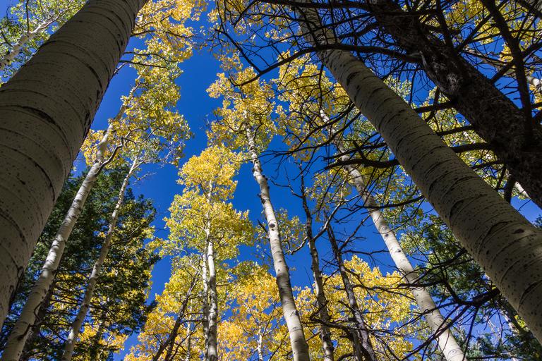 | Keywords: abineau-bear jaw loop abineaubearjawloop arizona bear jaw trail bearjawtrail bear jaw trail #26 bearjawtrail26 bear jaw trail no. 26 bearjawtrailno26 coconino national forest coconinonationalforest flagstaff ranger district flagstaffrangerdistrict forest service forestservice san francisco mountain sanfranciscomountain san francisco peaks sanfranciscopeaks u.s. forest service usforestservice usfs fall fall color fallcolor fall colors fallcolors fall foliage fallfoliage flagstaff forest hiking outdoors trail outdoor tree plant Fall color September 25, 2016 in the upper end of Bear Jaw Canyon, Bear Jaw Trail. Trees are approximately half turned, with some groups peaking or approaching peak color. Lower elevations of the trail are mostly green. Expect peak season through the first weekend of October on the upper end of the trail, and through the first week of October for the lower end of the trail. Abineau Trail is a steep 1,800 foot climb over two miles up the slopes of the San Francisco Peaks through Abineau Canyon. The trail meets the Waterline Trail at the top, which can be followed down to Bear Jaw Trail to return to the trailhead. Each leg of the loop is approximately two miles long, plus a 0.4 mile connector trail from the trailhead to the loop, making a total loop hike of approximately seven miles. The loop is one of the quintessential autumn hikes in the San Francisco Peaks. Aspens along all three legs of the loop turn gold, and falling leaves carpet the forest floor and decorate the conifers. Photo by Deborah Lee Soltesz, September 25, 2015. Credit: U.S. Forest Service, Coconino National Forest. For more information about this trail, see the Abineau-Bear Jaw Loop trail description on the Coconino National Forest website. Fall color September 25, 2016 in the upper end of Bear Jaw Canyon, Bear Jaw Trail. Trees are approximately half turned, with some groups peaking or approaching peak color. Lower elevations of the trail are mostly green. Expect peak season through the first weekend of October on the upper end of the trail, and through the first week of October for the lower end of the trail. Abineau Trail is a steep 1,800 foot climb over two miles up the slopes of the San Francisco Peaks through Abineau Canyon. The trail meets the Waterline Trail at the top, which can be followed down to Bear Jaw Trail to return to the trailhead. Each leg of the loop is approximately two miles long, plus a 0.4 mile connector trail from the trailhead to the loop, making a total loop hike of approximately seven miles. The loop is one of the quintessential autumn hikes in the San Francisco Peaks. Aspens along all three legs of the loop turn gold, and falling leaves carpet the forest floor and decorate the conifers. Photo by Deborah Lee Soltesz, September 25, 2015. Credit: U.S. Forest Service, Coconino National Forest. For more information about this trail, see the Abineau-Bear Jaw Loop trail description on the Coconino National Forest website. |